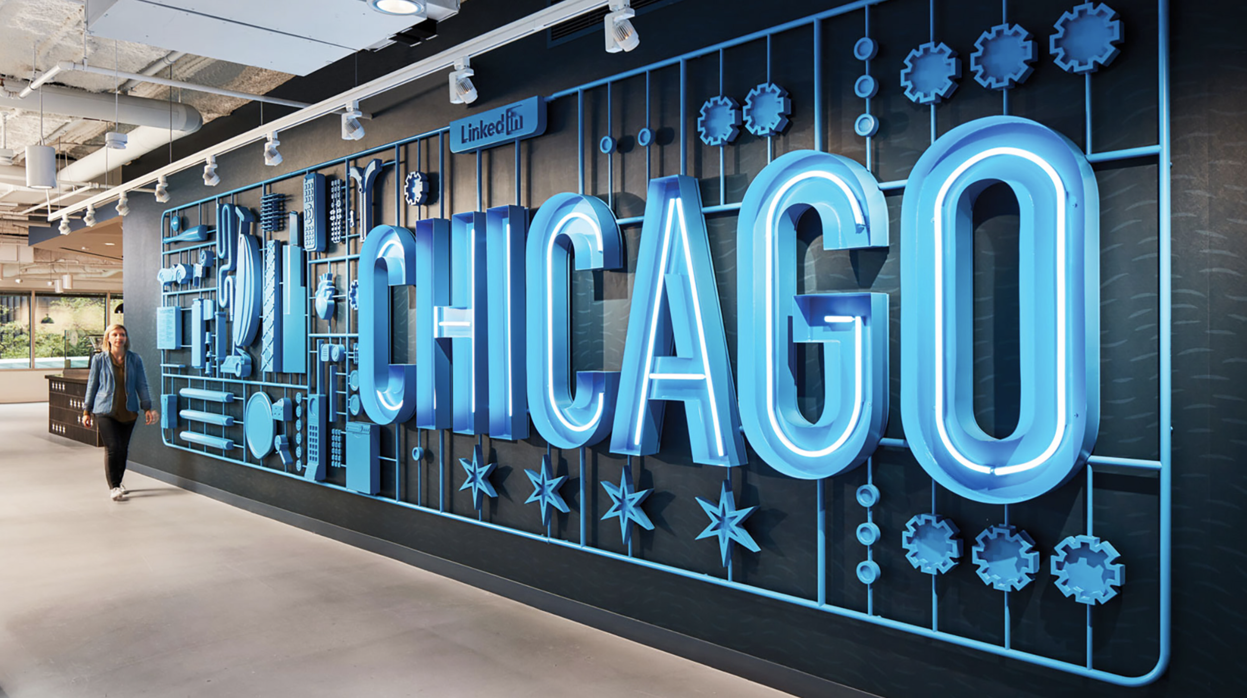 Our ‘Chicago Firsts’ installation on the primary reception floor became one of the most photographed LinkedIn brand moments in the global portfolio, more so than the collection of InBugs (unique three-dimensional LinkedIn logos) across the site.