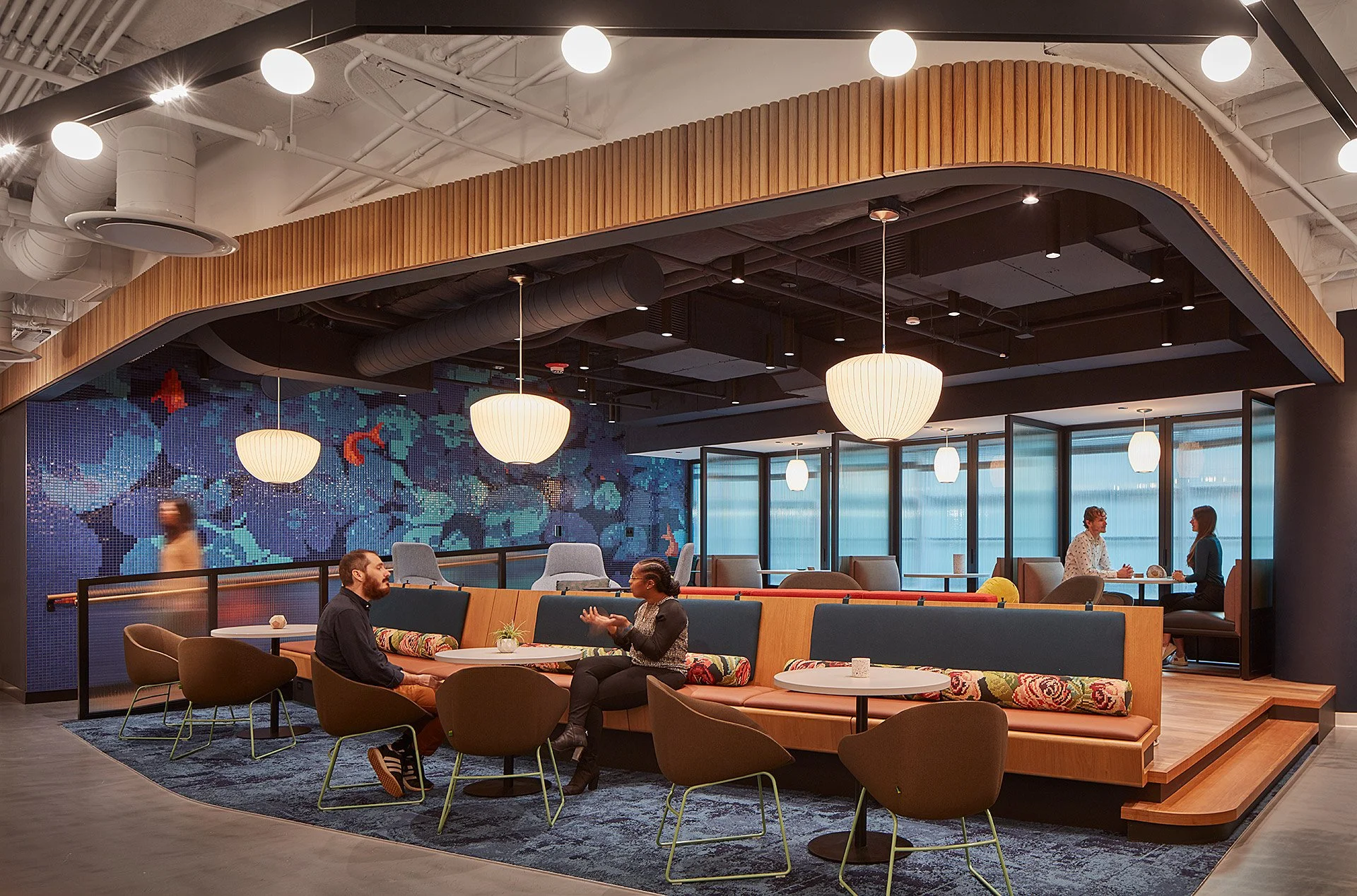 Built-in booths, beverage points, even a lounge we dubbed “The Lagoon”, became appealing destinations for productivity, and provided employees with choice outside the standard desk. These strategies increased utilization of what would otherwise be circulation shoulders void of activity, driving foot traffic, and distributing noise more evenly across floor plates.